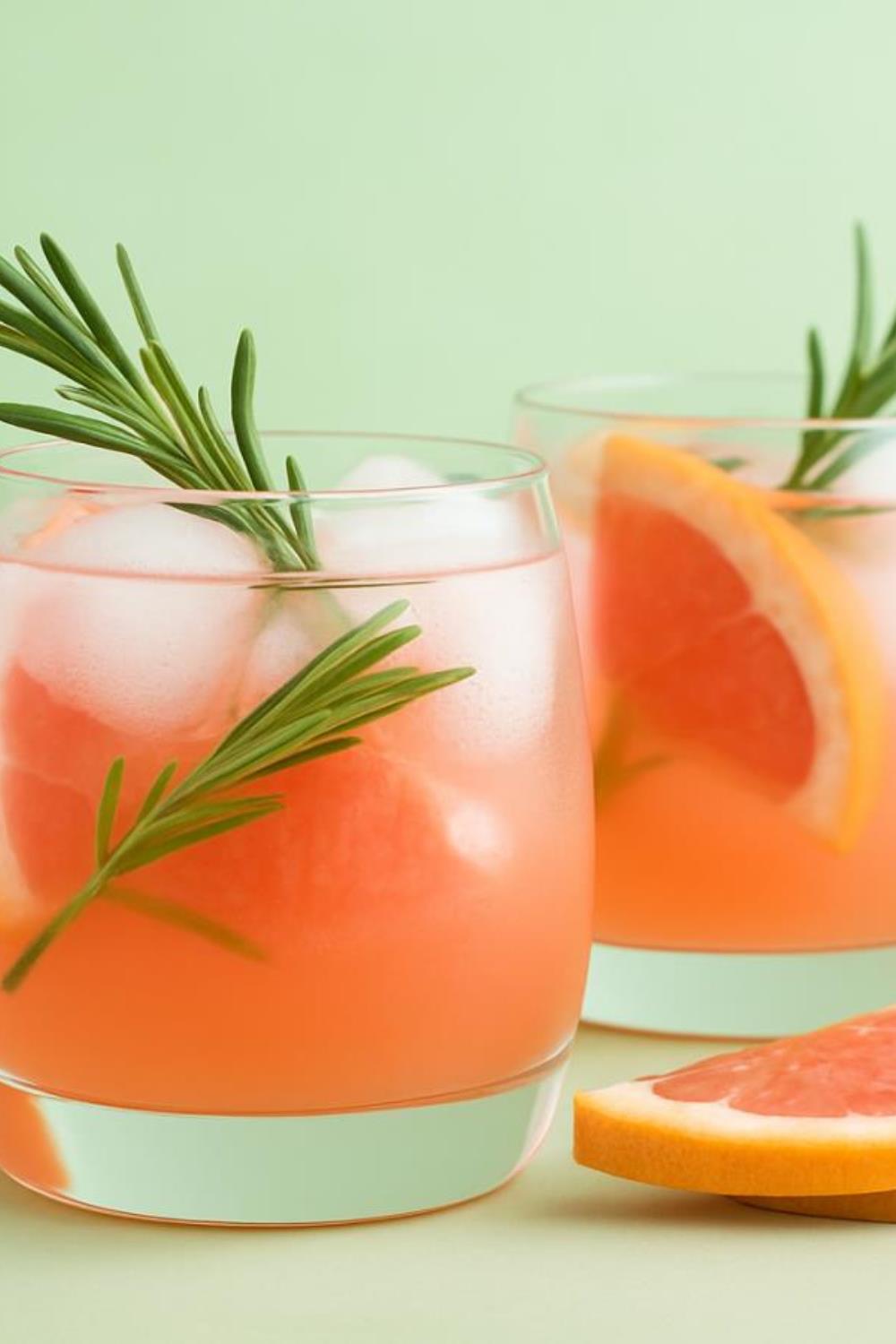 For a glass of lukewarm water (2 dl) you need half of a medium-sized grapefruit and a sprig of fresh rosemary. Squeeze the grapefruit, add the rosemary, and let it sit for half an hour.